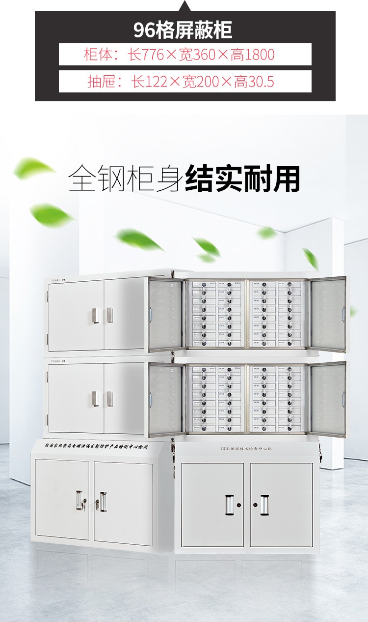 我公司研發(fā)生產(chǎn)的手機(jī)屏蔽柜,采用國保研發(fā)的先進(jìn)核心技術(shù),使用滿焊工藝進(jìn)行無縫焊接,能夠效屏蔽所有2G、3G、4G、5G、WIFI、藍(lán)牙等信號,并且有效抑制其電磁信息泄漏和防止外部強(qiáng)電磁干擾影響其正常工作。想了解詳細(xì)產(chǎn)品可咨詢客服熱線 : 13103798689