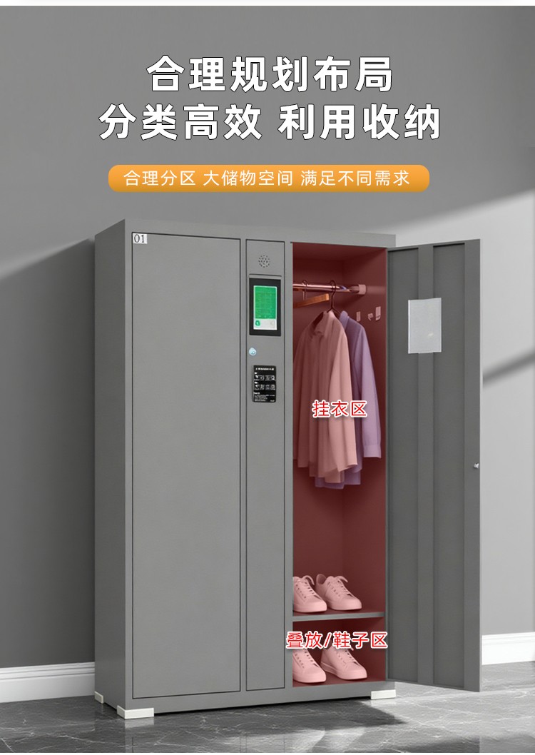 人臉識(shí)別衣柜可通過刷臉進(jìn)行物品存取,通常支持專人專用(固定人員)和隨機(jī)分配(流動(dòng)人員)兩種管理模式。